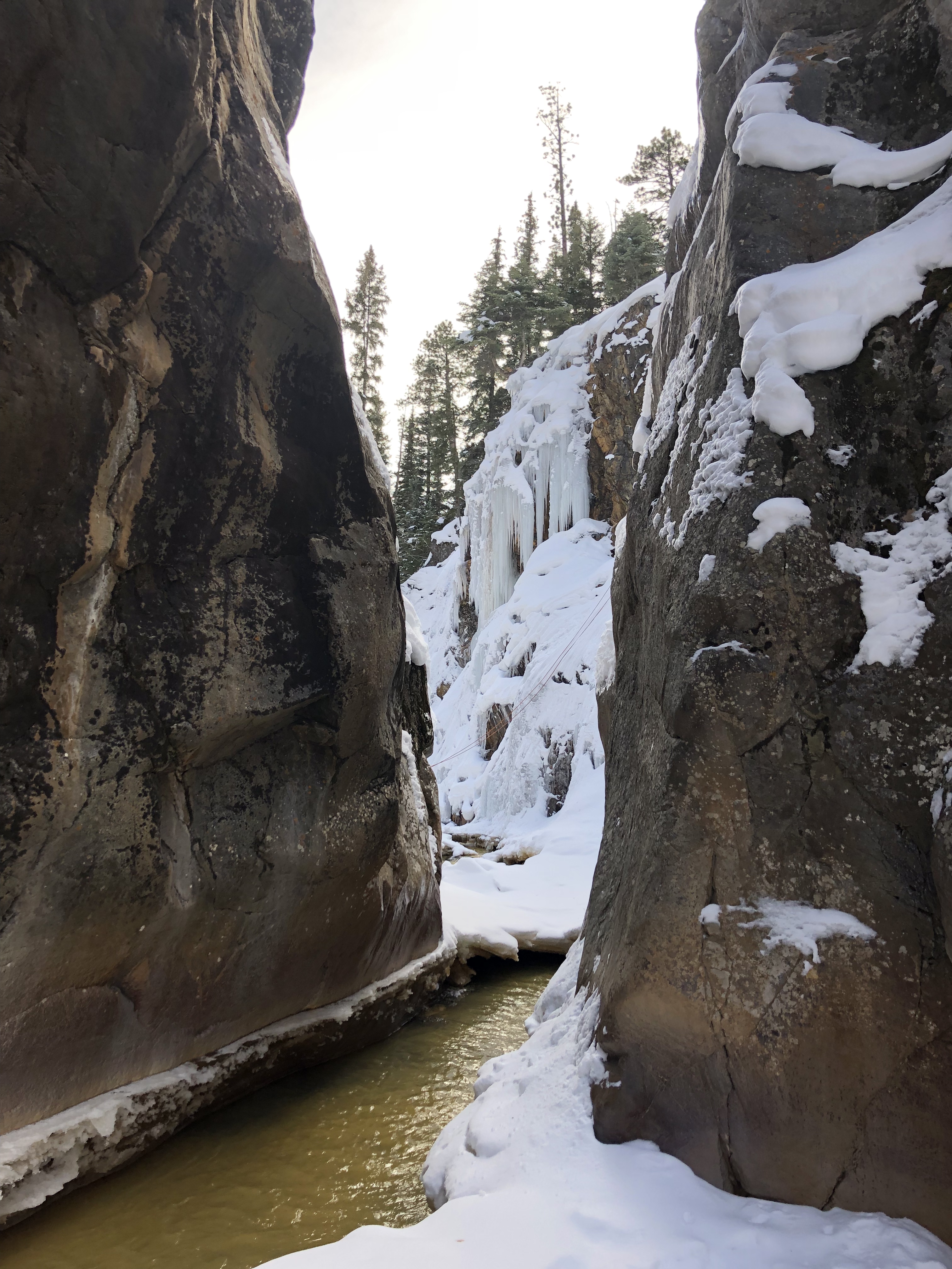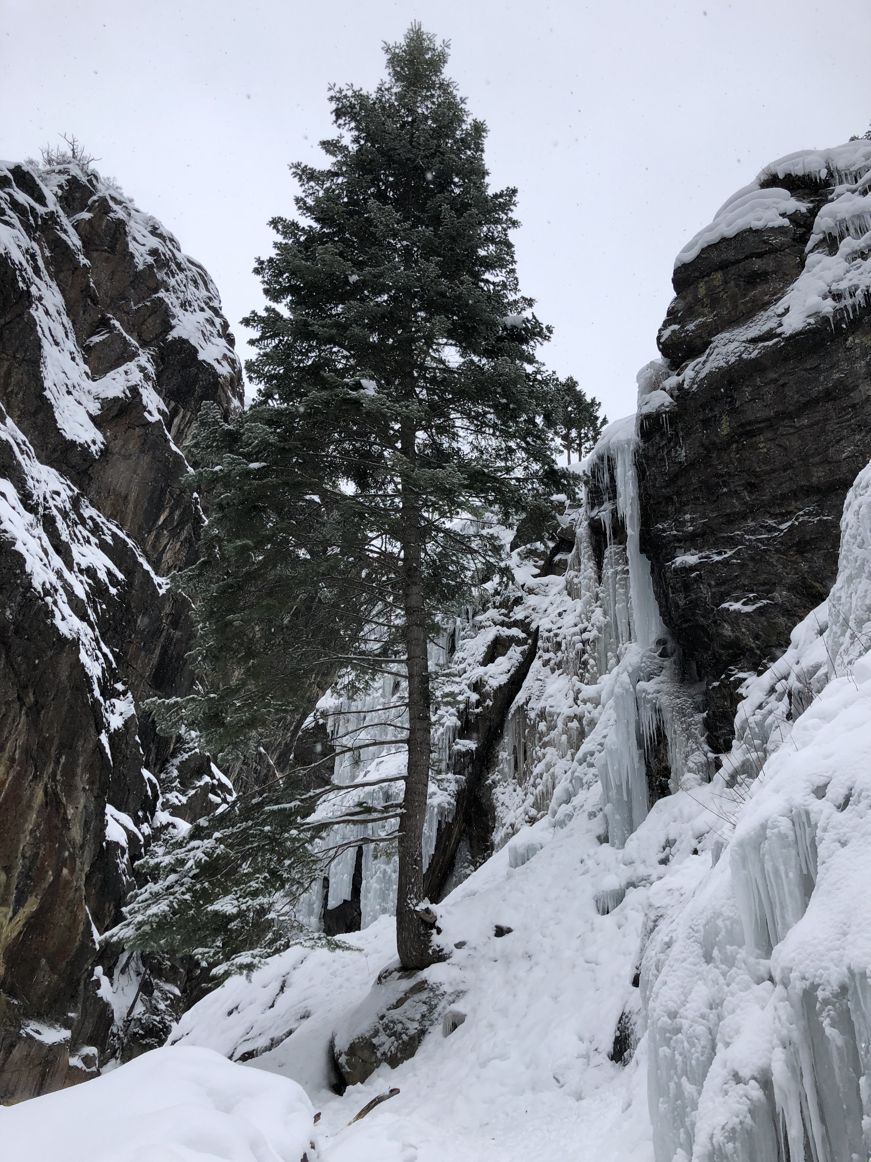 I texted my partner for the day, a climber I met on Mountain Project to let him know I was about 45 minutes out and en route to the warming hut in the park. Thumbs up, the plan is in motion. When I walked outside I paused slightly when I saw the car was covered in snow and heavy snow was falling I had no idea if the road to Ouray was going to be plowed or not at 6am.