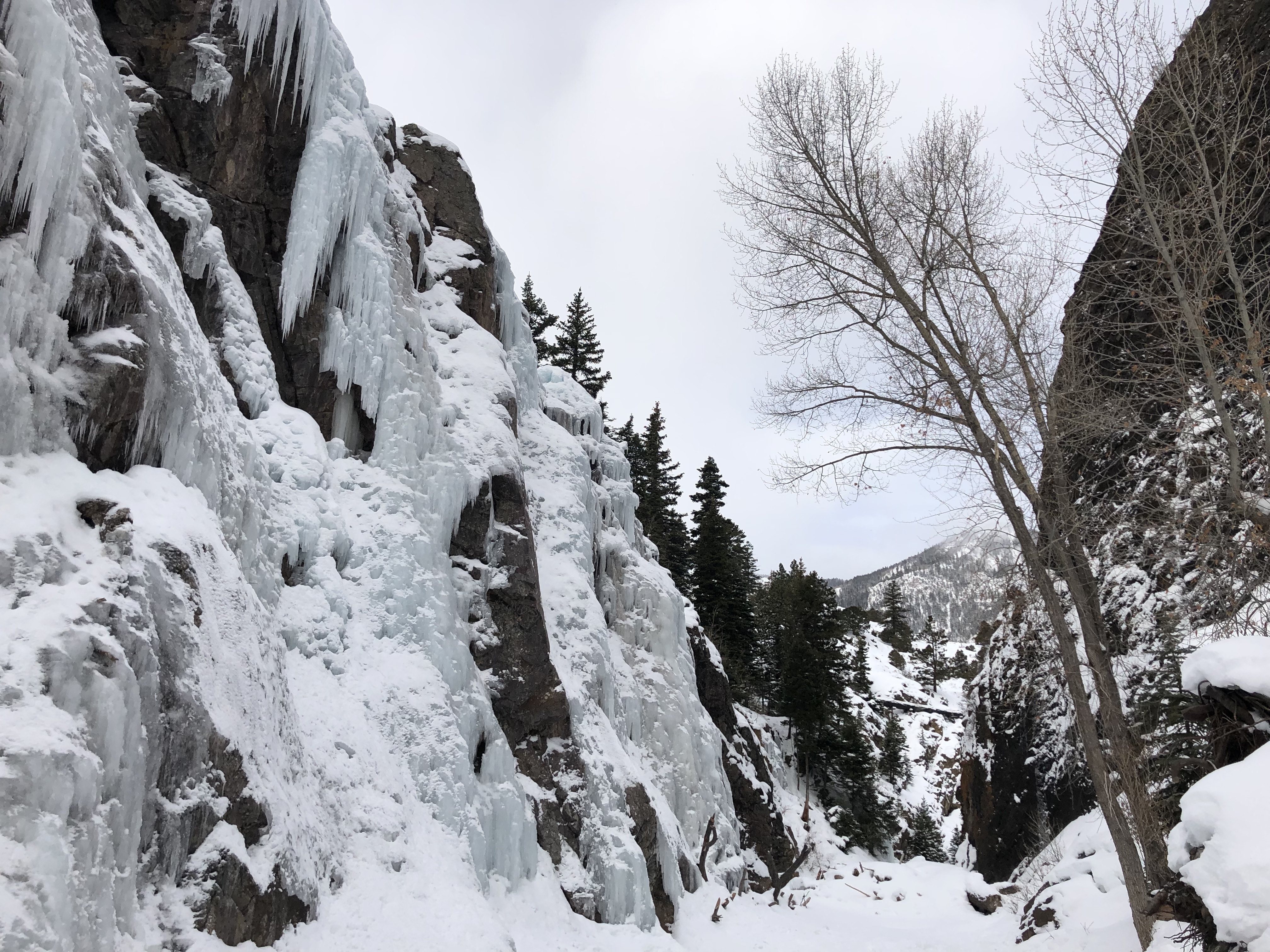 I flew into Denver from Portland on Saturday afternoon, picked up the rental and started the drive to Ouray. I got to Montrose around 10:30pm and the thought of sleeping in the car and suiting up to climb in the dark and cold lost all its appeal and I checked into a motel. I was able to get a good nights sleep, repack my climbing gear, make lunch and boil water for tea for the day.