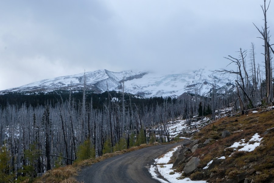 There were a couple of ski tracks leaving Cloud Cap and heading up the trail toward Cooper Spur. Someone got the early goods on Mt. Hood. Probably a little bony skiing back out.