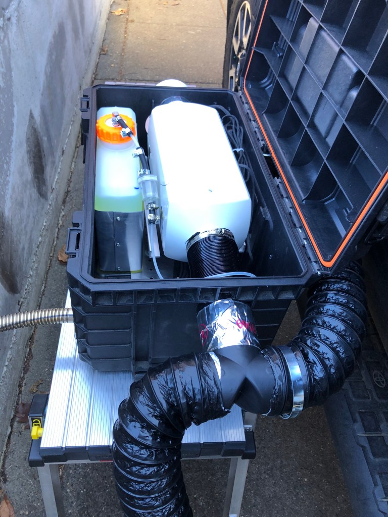 So some numbers first. I’m using a Jackery 500 to power the heater. When the glow plug is primed and fuel is combusting in the chamber, the heater is using about 14 watts of power. It takes less than 2 minutes for the heater to ignite and start blowing warm air. Running the heater for about 12 hours, I used about 4 1/2 Liters of fuel. I’m not using the thermostat on the controller to set a temperature, but controlling the fuel pump using the hertz settings, so that I can reduce the fuel (and therefore the heat output). I’m also not recycling the inside air back through the heater, but I’m pulling cold air from outside. This probably reduces the efficiency somewhat. If it were used in an enclosed van for example, the air would be recycled and the heater would operate more efficiently. Using it with the truck, that would be yet another duct to a system that I would prefer be as simple as possible.