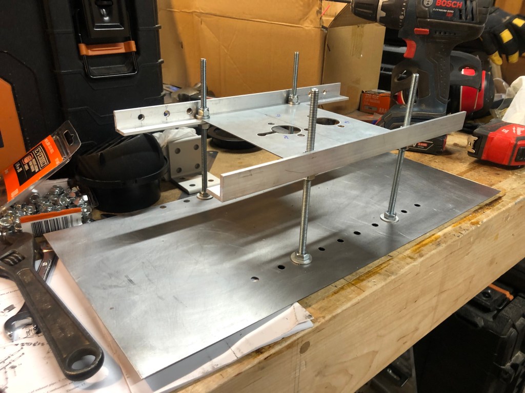 I wanted to keep a heat shield between any plastic and heated components of the build, so I built a mount for the heater within the box. The base is a piece of sheet metal and the threaded rod allowed me to raise or lower the height of the heater in the box. When mounted, I maximized the space below (the intake and exhaust ports) and raised the body of the heater to the point where latching the lid puts slight pressure to keep everything snug within the box. The aluminum angle is also bolted to the back of the box. The 5L fuel tank sits inside the box with a sheet metal heat shield around it that I fabricated with some flashing and pop rivets. The exhaust line is wrapped in motorcycle exhaust wrap attached to a double walled marine port. The heater itself is a Chinese copy of a Webasto, but I upgraded the exhaust line with a better Webasto (better materials, slightly thicker).