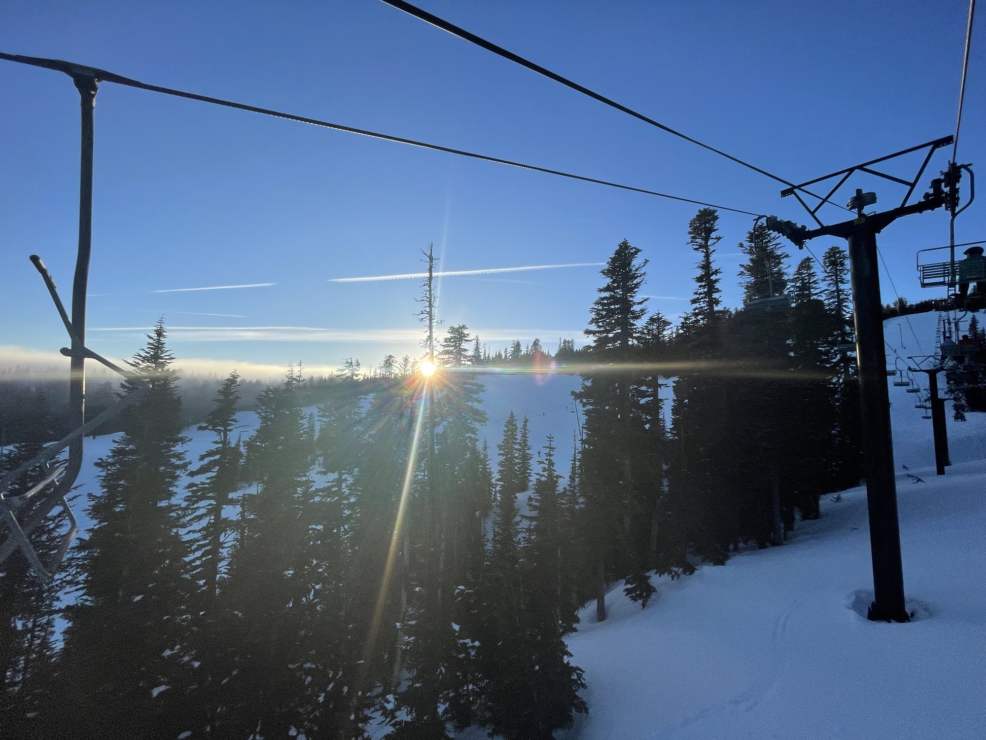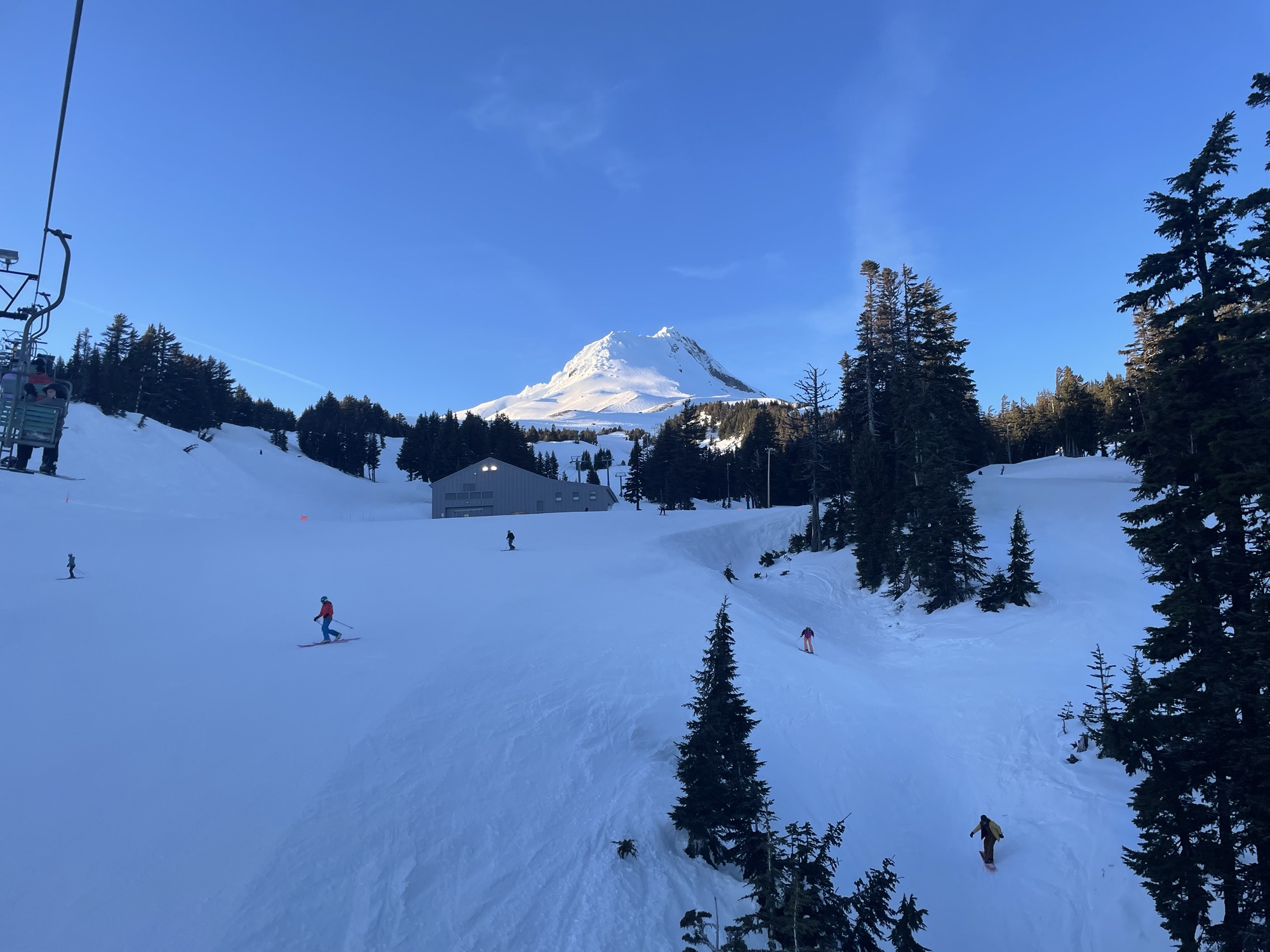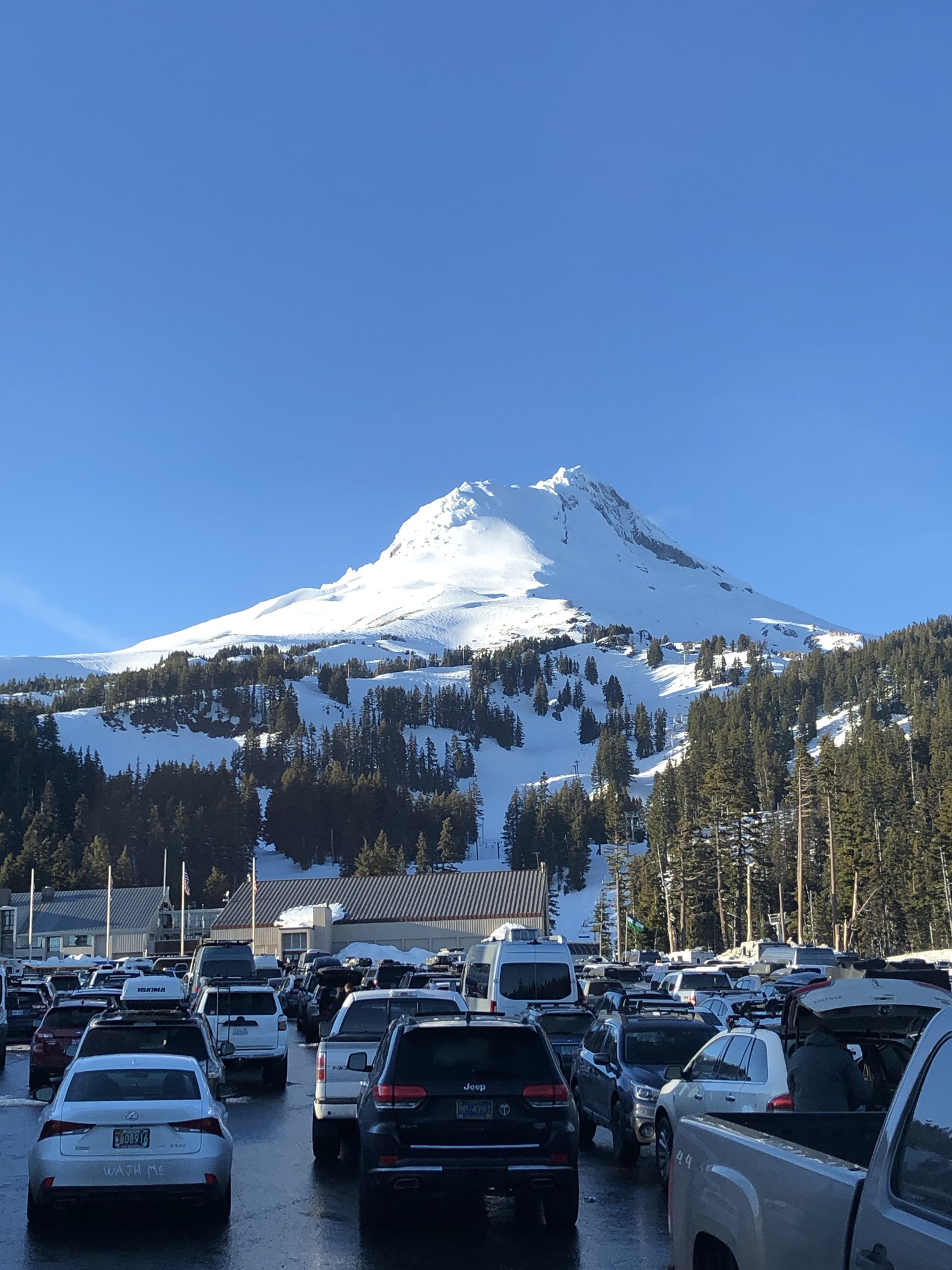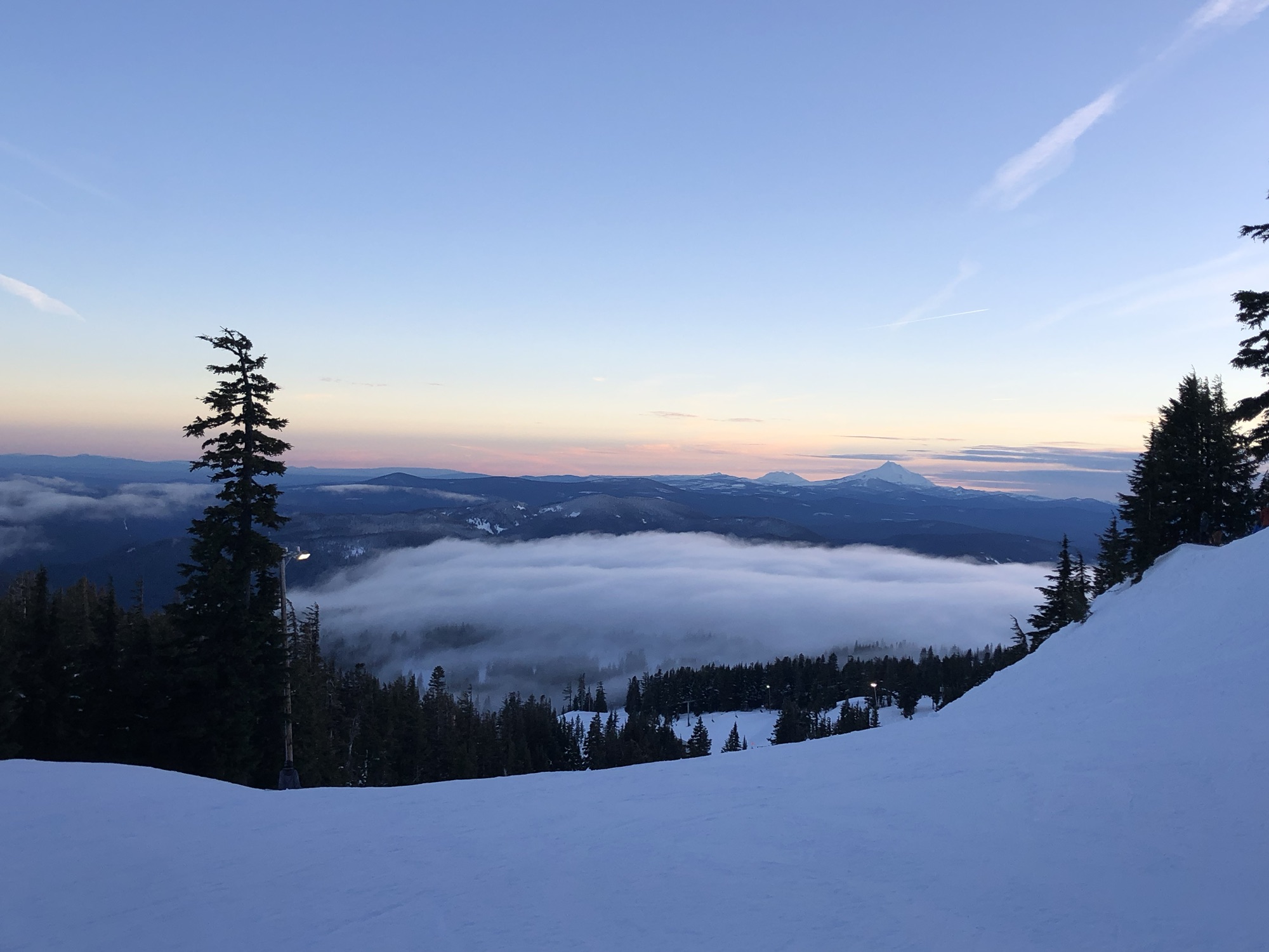 We were able to get some sunshine turns in before the sun went down on Saturday, then a few hours of quiet turns with few crowds and zero wind. Super Bowl Sunday we snacked and watched the pre-game, then decided to roll back up the the mountain. We passed the hordes coming back to Portland for the game and had the mountain to ourselves.