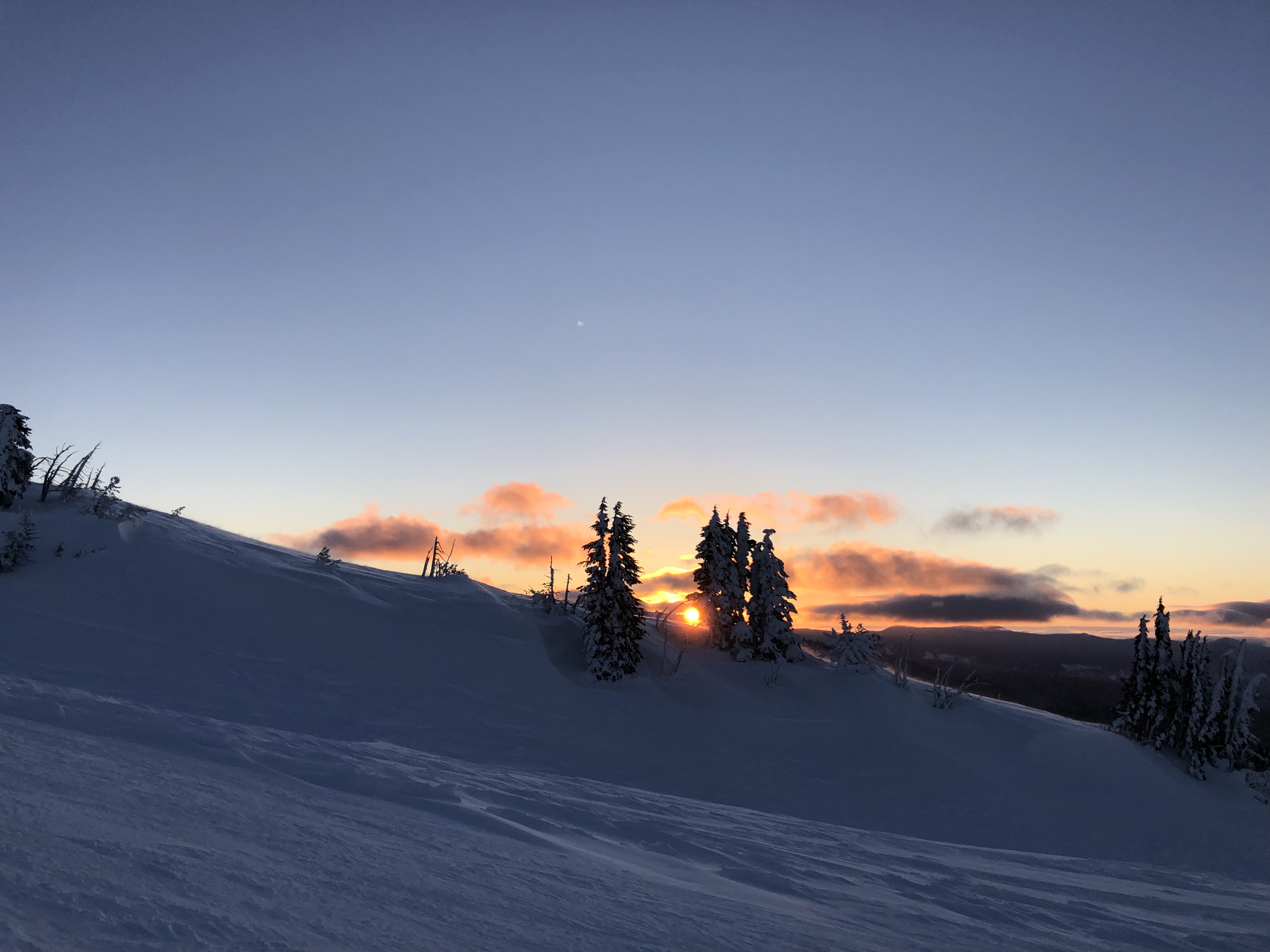 Through my ear plugs I could hear the wind whipping through the parking lot from deep in my cocoon as the van gently rocked side to side. The only part exposed from my sleeping bag, my nose, was freezing cold. We were two mochi in a walk in freezer, struggling to sleep a few hours before signing out at the climbers bivouac to start skinning up Mt Hood.