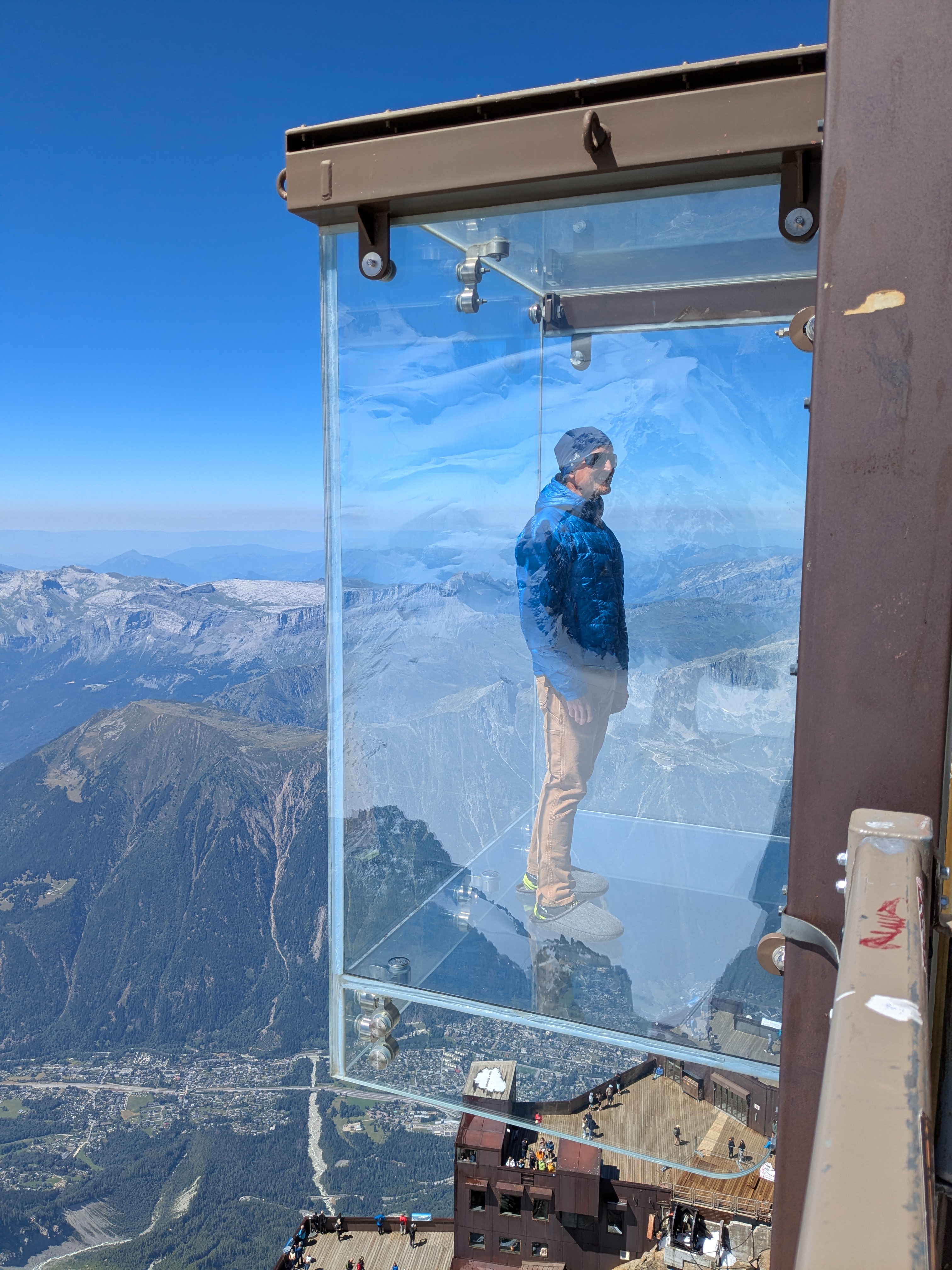 I left myself one day in Chamonix to shop for gifts and to take the ride up the Aiguille du Midi. The views from the top were amazing and I got up close and personal to the exit from the midi to climb the Cosmiques Aretes and Mont Blanc du Tacul – among other routes.