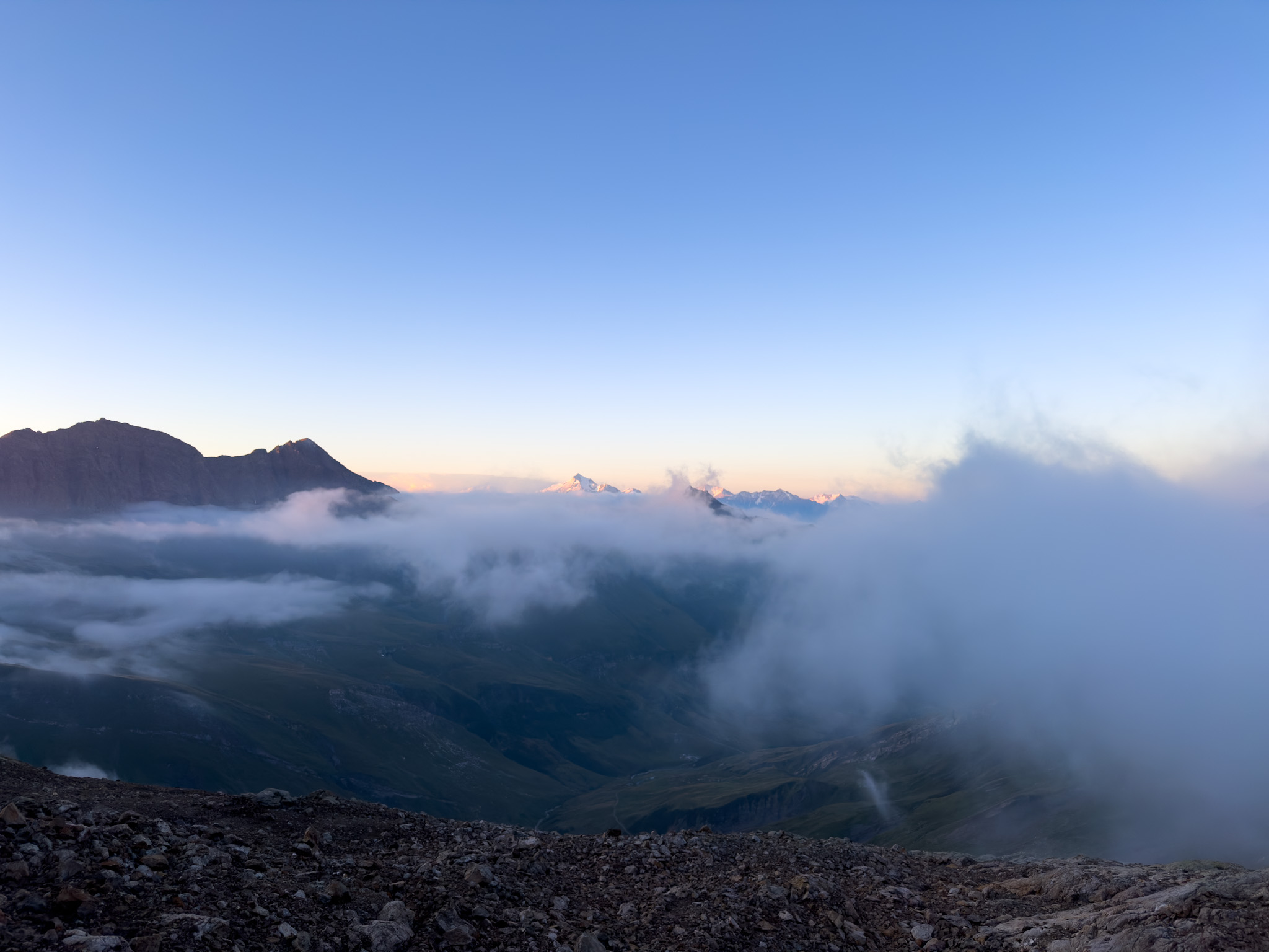 The climb to Col de Tricot was pleasant with some peeks of Mt Blanc across the Bionnassay glacier. I was able to glimpse the Gouter hut sitting up on the ridge reflecting the sun off its silver siding. Gouter is the second hut on the Gouter route to the summit (after Tete Rousse), where most climbers sleep before summiting the next day. I really struggled with taking the week to climb some of the alpine routes around Mont Blanc, find partners through the Oak app, or hire a guide – or just solo the TMB in the 6 days that I had in Chamonix valley. I opted for the latter, but chose my route to keep me high on the mountain.